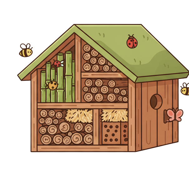 Bauen Sie aus gesammelten Naturmaterialien (Schilf, Bambus, Ton) eine Unterschlupf- und Nistmöglichkeit für Wildbienen und andere nützliche Insekten.